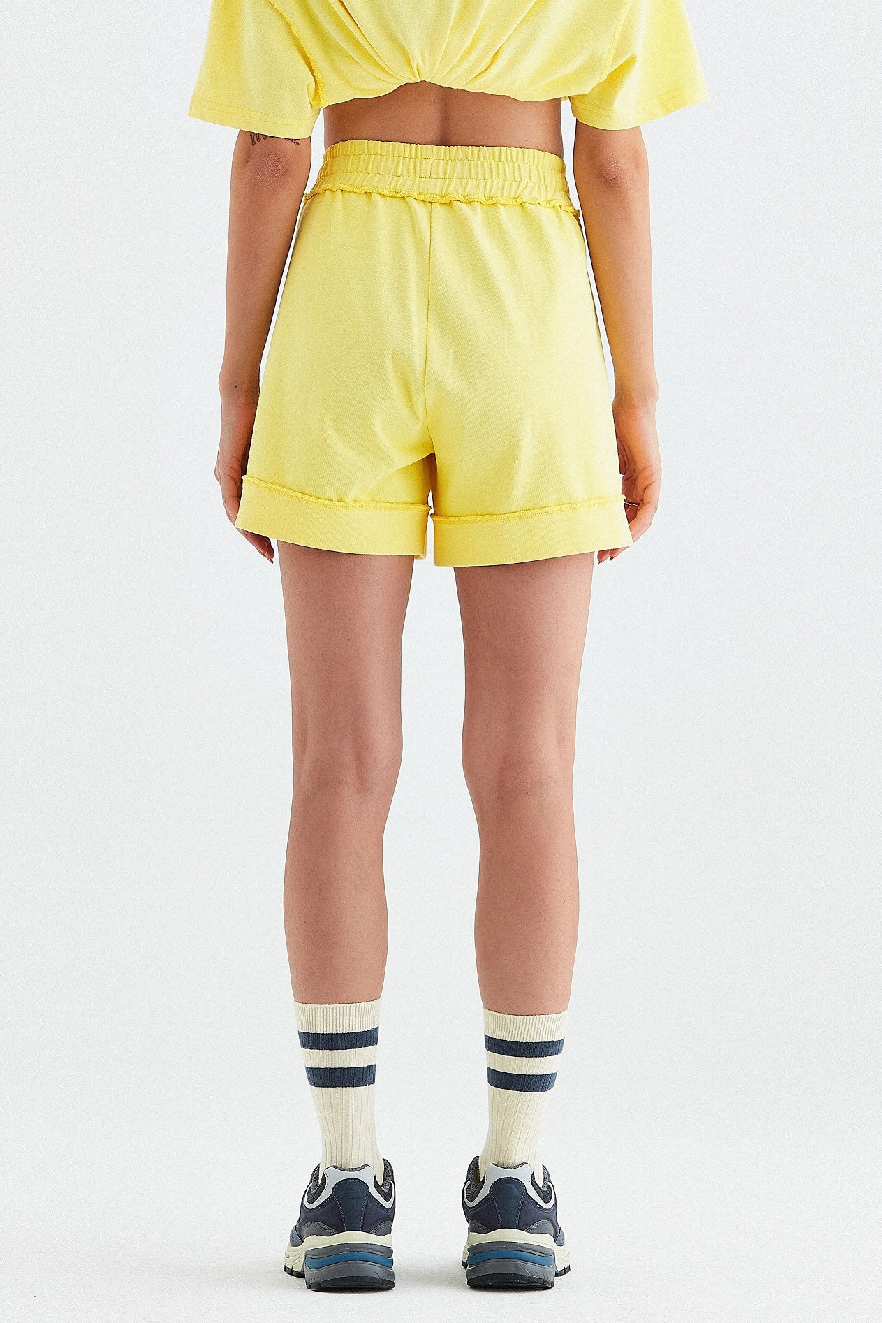 Gemütliche und stylische kurze Hose für Damen in Gelb. Die Shorts hat die perfekte Länge und hat durch ihren verstärkten Bund die perfekte Passform.