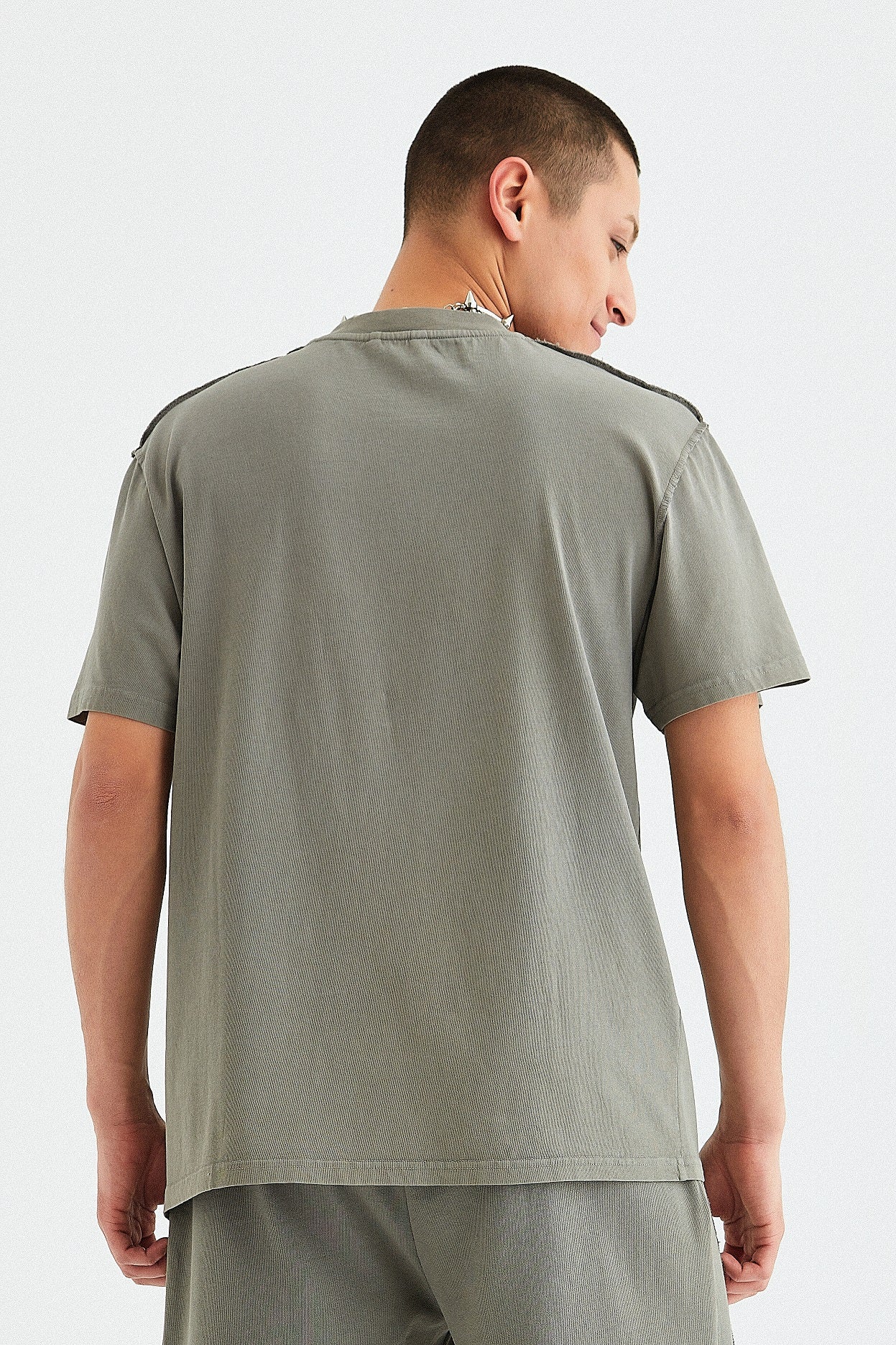 Bequemes und stilvolles T-Shirt für Herren mit Rundhalsausschnitt aus 100 % Baumwolle in Grau. Der lässige Schnitt und die angewandte Rohnahttechnik machen das farbenfrohe T-Shirt zu einem Hingucker.